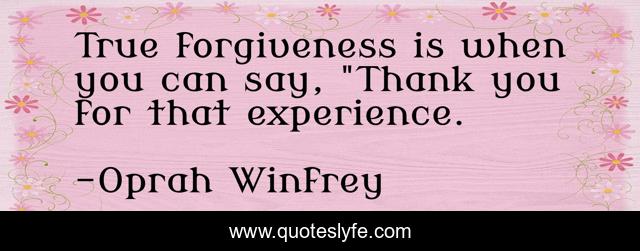 This page presents the quote "True forgiveness is when you can say, "Thank you for that experience.". Author of this quote is Oprah Winfrey. This quote is about gratitude, forgiveness,.