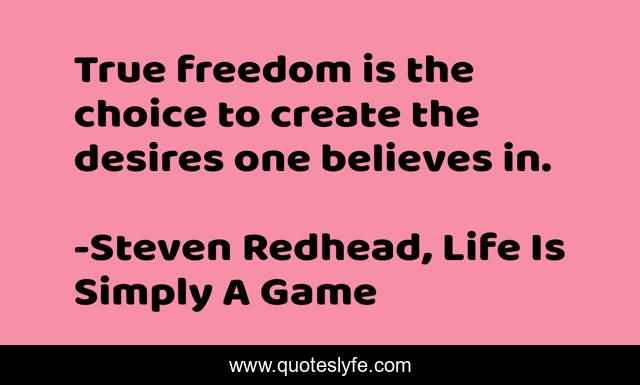 "Steven Redhead, Life Is Simply A Game Quotes." Quoteslyfe.com, 2025. Sat. 06 Dec. 2025. <https://www.quoteslyfe.com/quote/True-freedom-is-the-choice-to-create-55124>.