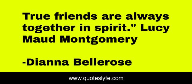 This page presents the quote "True friends are always together in spirit." Lucy Maud Montgomery". Author of this quote is Dianna Bellerose. This quote is about enthusiasm, inspirational,.