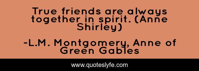 "L.M. Montgomery, Anne of Green Gables Quotes." Quoteslyfe.com, 2025. Mon. 08 Dec. 2025. <https://www.quoteslyfe.com/quote/True-friends-are-always-together-in-spirit-49999>.