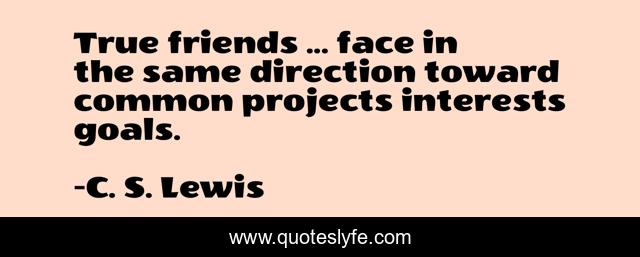 This page presents the quote "True friends ... face in the same direction toward common projects interests goals.". Author of this quote is C. S. Lewis. .