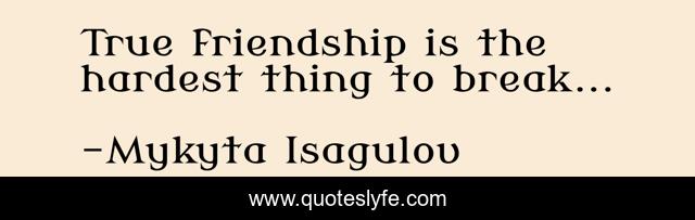 This page presents the quote "True friendship is the hardest thing to break...". Author of this quote is Mykyta Isagulov. .