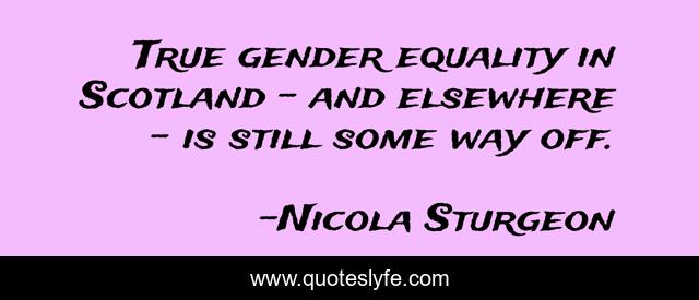 This page presents the quote "True gender equality in Scotland - and elsewhere - is still some way off.". Author of this quote is Nicola Sturgeon. This quote is about gender, true, way,.