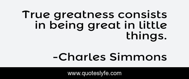 This page presents the quote "True greatness consists in being great in little things.". Author of this quote is Charles Simmons. This quote is about great, little things,.