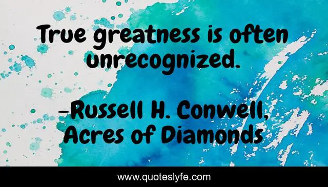 "Russell H. Conwell, Acres of Diamonds Quotes." Quoteslyfe.com, 2025. Fri. 05 Dec. 2025. <https://www.quoteslyfe.com/quote/True-greatness-is-often-unrecognized-165849>.