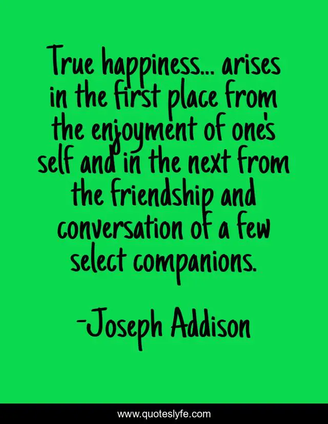 This page presents the quote "True happiness... arises in the first place from the enjoyment of one's self and in the next from the friendship and conversation of a few select companions.". Author of this quote is Joseph Addison. .