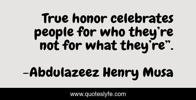 "Abdulazeez Henry Musa Quotes." Quoteslyfe.com, 2025. Sat. 06 Dec. 2025. <https://www.quoteslyfe.com/quote/True-honor-celebrates-people-for-who-they-239945>.
