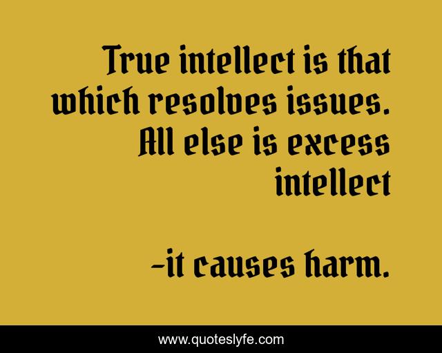 This page presents the quote "True intellect is that which resolves issues. All else is excess intellect". Author of this quote is it causes harm.. .