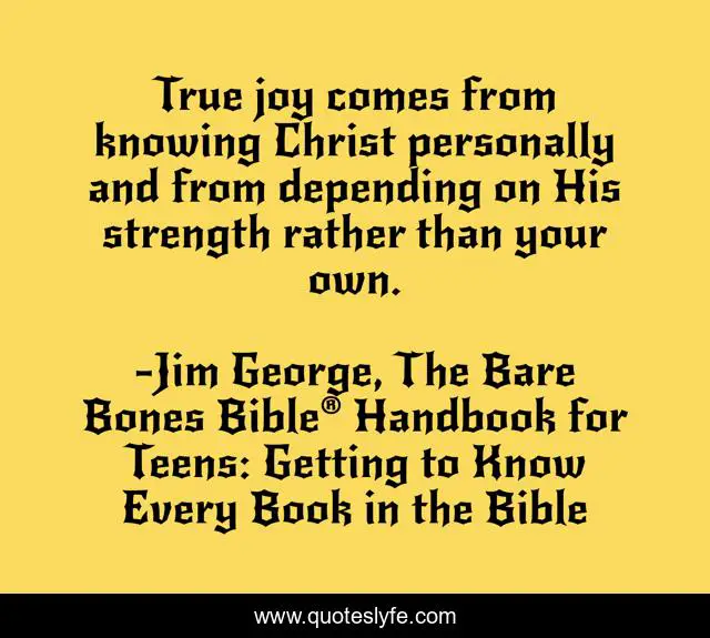 "Jim George, The Bare Bones Bible® Handbook for Teens: Getting to Know Every Book in the Bible Quotes." Quoteslyfe.com, 2025. Fri. 05 Dec. 2025. <https://www.quoteslyfe.com/quote/True-joy-comes-from-knowing-Christ-personally-97437>.