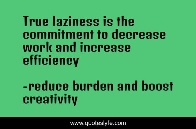 This page presents the quote "True laziness is the commitment to decrease work and increase efficiency". Author of this quote is reduce burden and boost creativity. .