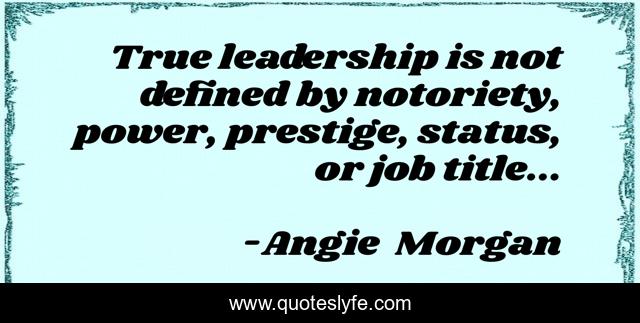 "Angie Morgan Quotes." Quoteslyfe.com, 2025. Mon. 08 Dec. 2025. <https://www.quoteslyfe.com/quote/True-leadership-is-not-defined-by-notoriety-253439>.