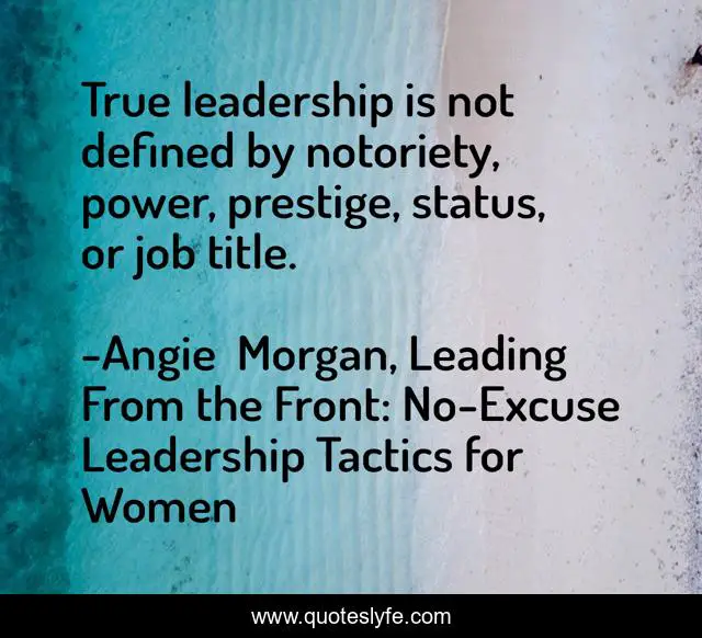 "Angie Morgan, Leading From the Front: No-Excuse Leadership Tactics for Women Quotes." Quoteslyfe.com, 2025. Mon. 08 Dec. 2025. <https://www.quoteslyfe.com/quote/True-leadership-is-not-defined-by-notoriety-65268>.