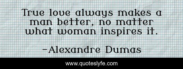 "Alexandre Dumas Quotes." Quoteslyfe.com, 2025. Fri. 05 Dec. 2025. <https://www.quoteslyfe.com/quote/True-love-always-makes-a-man-better-1388>.