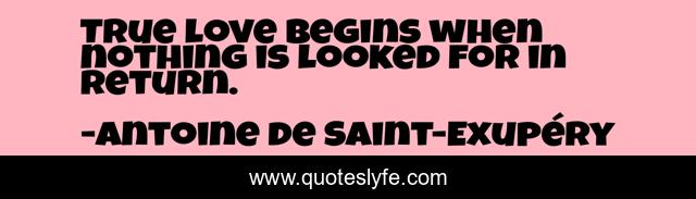 This page presents the quote "True love begins when nothing is looked for in return.". Author of this quote is Antoine de Saint-Exupéry. This quote is about love, affection,.