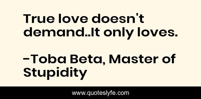 "Toba Beta, Master of Stupidity Quotes." Quoteslyfe.com, 2025. Sat. 06 Dec. 2025. <https://www.quoteslyfe.com/quote/True-love-doesn-t-demand-It-only-197546>.