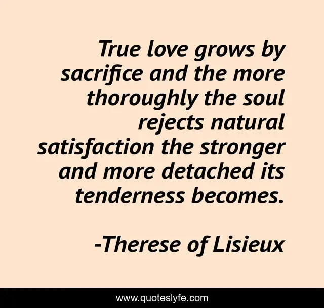 "Therese of Lisieux Quotes." Quoteslyfe.com, 2025. Tue. 09 Dec. 2025. <https://www.quoteslyfe.com/quote/True-love-grows-by-sacrifice-and-the-272378>.