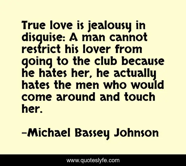 "Michael Bassey Johnson Quotes." Quoteslyfe.com, 2025. Mon. 08 Dec. 2025. <https://www.quoteslyfe.com/quote/True-love-is-jealousy-in-disguise-A-120629>.