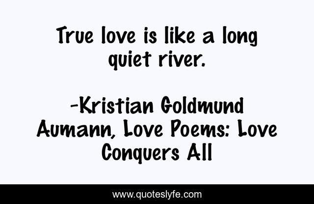 This page presents the quote "True love is like a long quiet river.". Author of this quote is Kristian Goldmund Aumann, Love Poems: Love Conquers All. This quote is about love, affection,.