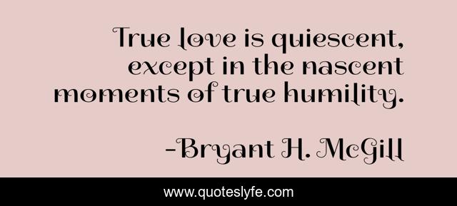 This page presents the quote "True love is quiescent, except in the nascent moments of true humility.". Author of this quote is Bryant H. McGill. This quote is about true love, love is, humility,.