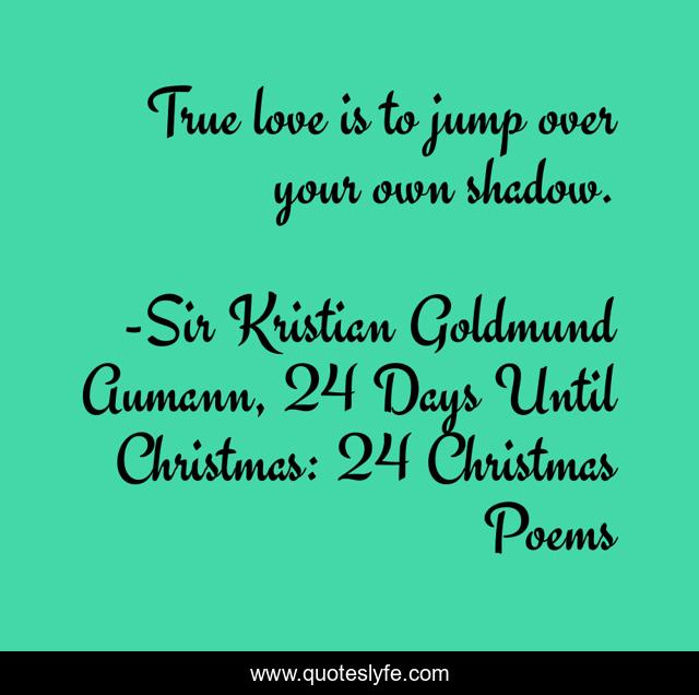 "Sir Kristian Goldmund Aumann, 24 Days Until Christmas: 24 Christmas Poems Quotes." Quoteslyfe.com, 2025. Mon. 08 Dec. 2025. <https://www.quoteslyfe.com/quote/True-love-is-to-jump-over-your-209635>.