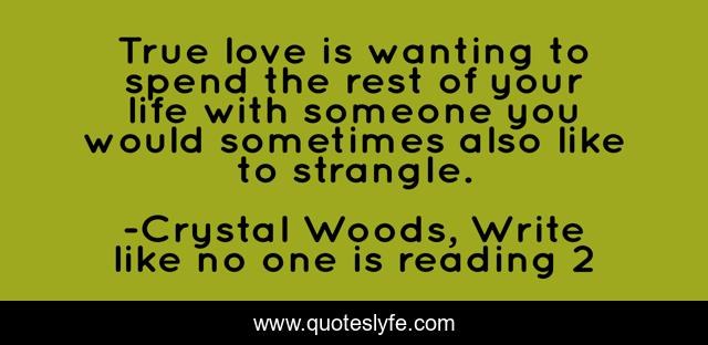 This page presents the quote "True love is wanting to spend the rest of your life with someone you would sometimes also like to strangle.". Author of this quote is Crystal Woods, Write like no one is reading 2. This quote is about eternity, partners, life, lovers, love-madly, reality, marriage, truth, i-do,.