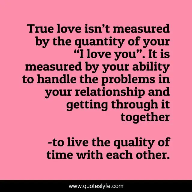 This page presents the quote "True love isn’t measured by the quantity of your “I love you”. It is measured by your ability to handle the problems in your relationship and getting through it together". Author of this quote is to live the quality of time with each other.. .
