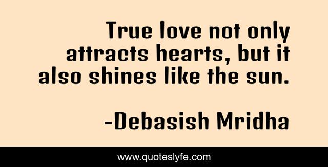 This page presents the quote "True love not only attracts hearts, but it also shines like the sun.". Author of this quote is Debasish Mridha. This quote is about true-love, miraboli, love, oscar-wilde, shines-like-the-sun, philosophy, debasish-mridha, tagore, quotes,.