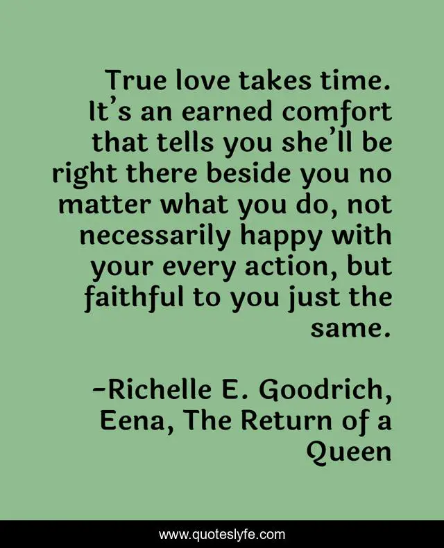 "Richelle E. Goodrich, Eena, The Return of a Queen Quotes." Quoteslyfe.com, 2025. Fri. 05 Dec. 2025. <https://www.quoteslyfe.com/quote/True-love-takes-time-It-s-an-189551>.
