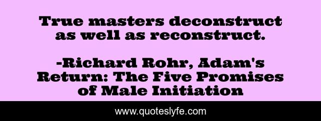 "Richard Rohr, Adam's Return: The Five Promises of Male Initiation Quotes." Quoteslyfe.com, 2025. Sun. 14 Dec. 2025. <https://www.quoteslyfe.com/quote/True-masters-deconstruct-as-well-as-reconstruct-173733>.