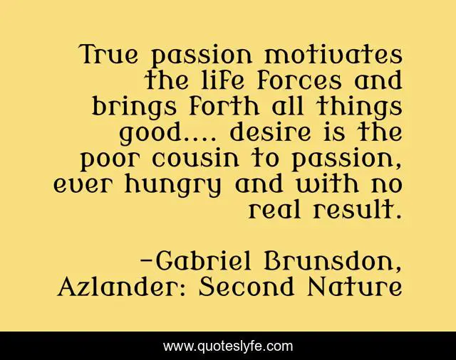 "Gabriel Brunsdon, Azlander: Second Nature Quotes." Quoteslyfe.com, 2025. Sat. 06 Dec. 2025. <https://www.quoteslyfe.com/quote/True-passion-motivates-the-life-forces-and-145832>.