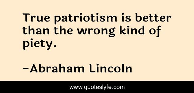 This page presents the quote "True patriotism is better than the wrong kind of piety.". Author of this quote is Abraham Lincoln. This quote is about better, kind, true,.