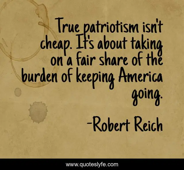 "Robert Reich Quotes." Quoteslyfe.com, 2025. Mon. 08 Dec. 2025. <https://www.quoteslyfe.com/quote/True-patriotism-isn-t-cheap-It-s-307380>.