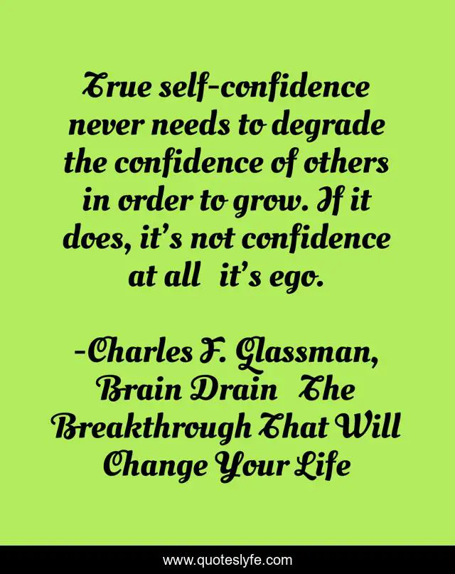 "Charles F. Glassman, Brain Drain The Breakthrough That Will Change Your Life Quotes." Quoteslyfe.com, 2025. Sat. 06 Dec. 2025. <https://www.quoteslyfe.com/quote/True-self-confidence-never-needs-to-degrade-146815>.