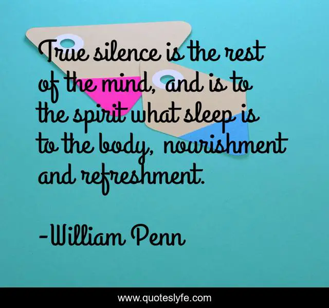 This page presents the quote "True silence is the rest of the mind, and is to the spirit what sleep is to the body, nourishment and refreshment.". Author of this quote is William Penn. This quote is about sleep, mind, silence,.