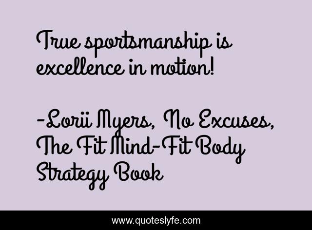 "Lorii Myers, No Excuses, The Fit Mind-Fit Body Strategy Book Quotes." Quoteslyfe.com, 2025. Tue. 09 Dec. 2025. <https://www.quoteslyfe.com/quote/True-sportsmanship-is-excellence-in-motion-229197>.