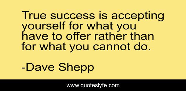 This page presents the quote "True success is accepting yourself for what you have to offer rather than for what you cannot do.". Author of this quote is Dave Shepp. This quote is about self-love, success, acceptance-of-oneself, acceptance-self-love, talents, overcoming-obstacles,.