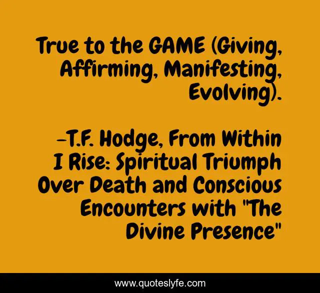 "T.F. Hodge, From Within I Rise: Spiritual Triumph Over Death and Conscious Encounters with "The Divine Presence" Quotes." Quoteslyfe.com, 2025. Sat. 06 Dec. 2025. <https://www.quoteslyfe.com/quote/True-to-the-GAME-Giving-Affirming-Manifesting-125195>.