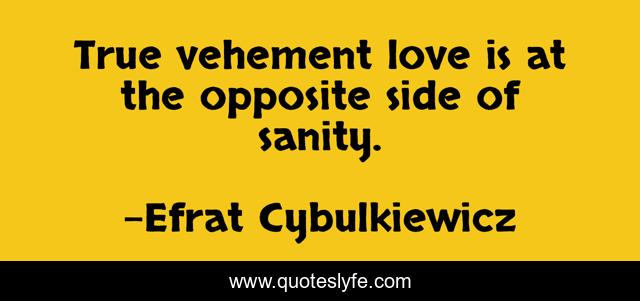 This page presents the quote "True vehement love is at the opposite side of sanity.". Author of this quote is Efrat Cybulkiewicz. This quote is about self-love, self-confidence, love, vehement, vehement-love, sanity, self-awareness, affection,.