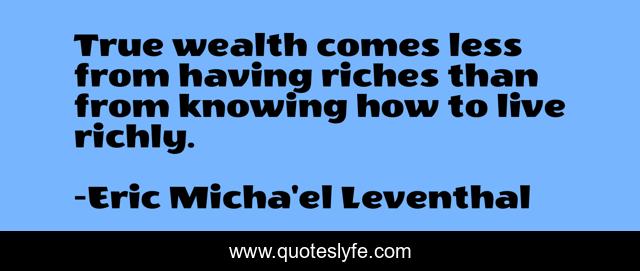 "Eric Micha'el Leventhal Quotes." Quoteslyfe.com, 2025. Mon. 08 Dec. 2025. <https://www.quoteslyfe.com/quote/True-wealth-comes-less-from-having-riches-31626>.
