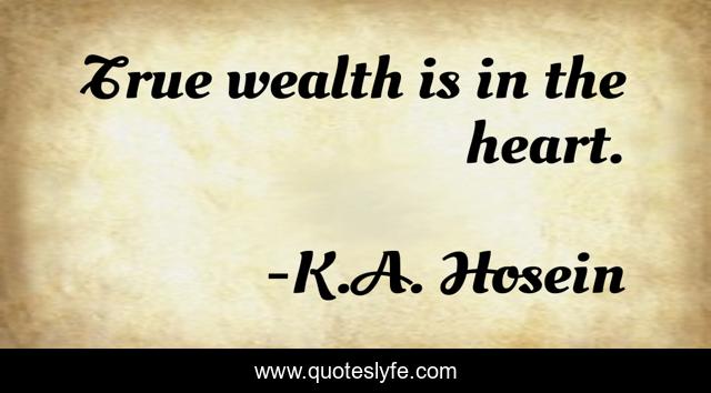 This page presents the quote "True wealth is in the heart.". Author of this quote is K.A. Hosein. .