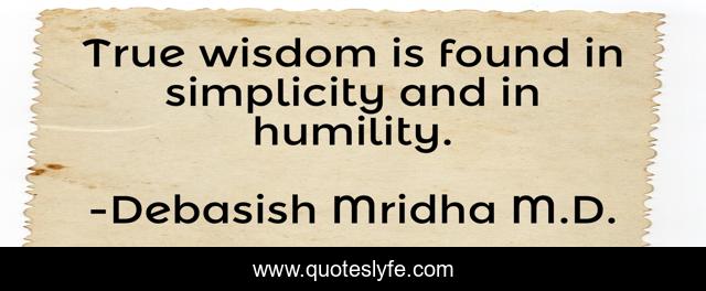 This page presents the quote "True wisdom is found in simplicity and in humility.". Author of this quote is Debasish Mridha M.D.. This quote is about simplicity, philosophy, debasish-mridha, wisdom, quotes, inspirational, humility, enthusiasm, debasish-mridha-m-d,.