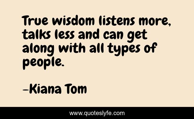 This page presents the quote "True wisdom listens more, talks less and can get along with all types of people.". Author of this quote is Kiana Tom. This quote is about along, true, people,.