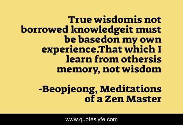 "Beopjeong, Meditations of a Zen Master Quotes." Quoteslyfe.com, 2025. Sat. 06 Dec. 2025. <https://www.quoteslyfe.com/quote/True-wisdomis-not-borrowed-knowledgeit-must-be-211928>.