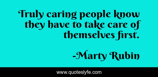 This page presents the quote "Truly caring people know they have to take care of themselves first.". Author of this quote is Marty Rubin. This quote is about caring, compassion, kindness, self-preservation,.