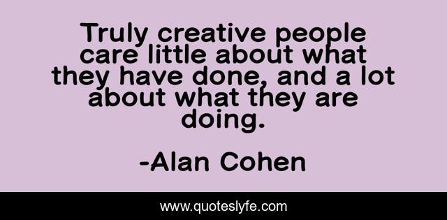 This page presents the quote "Truly creative people care little about what they have done, and a lot about what they are doing.". Author of this quote is Alan Cohen. This quote is about creative-act, creativity,.