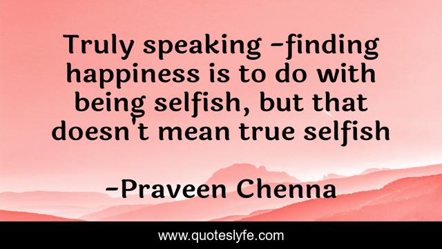 This page presents the quote "Truly speaking -finding happiness is to do with being selfish, but that doesn't mean true selfish". Author of this quote is Praveen Chenna. This quote is about selfish, true, happiness, praveenchenna,.