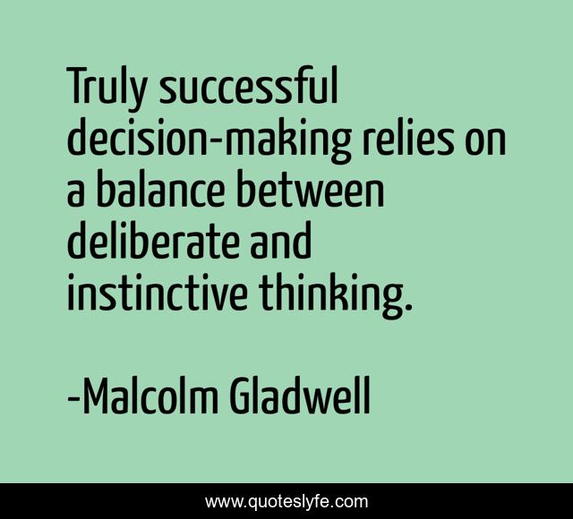 "Malcolm Gladwell Quotes." Quoteslyfe.com, 2025. Sun. 07 Dec. 2025. <https://www.quoteslyfe.com/quote/Truly-successful-decision-making-relies-on-a-219018>.