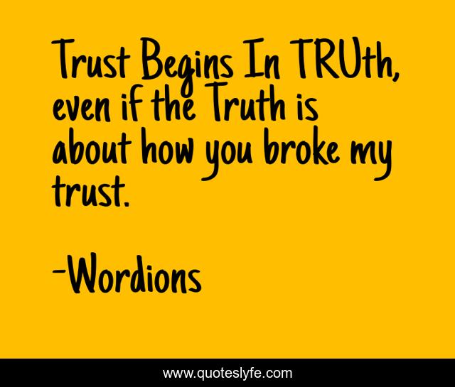 This page presents the quote "Trust Begins In TRUth, even if the Truth is about how you broke my trust.". Author of this quote is Wordions. This quote is about wordions-com, trust, wordions, truth,.
