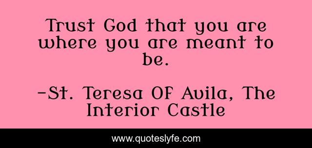 "St. Teresa Of Avila, The Interior Castle Quotes." Quoteslyfe.com, 2025. Sun. 07 Dec. 2025. <https://www.quoteslyfe.com/quote/Trust-God-that-you-are-where-you-247600>.