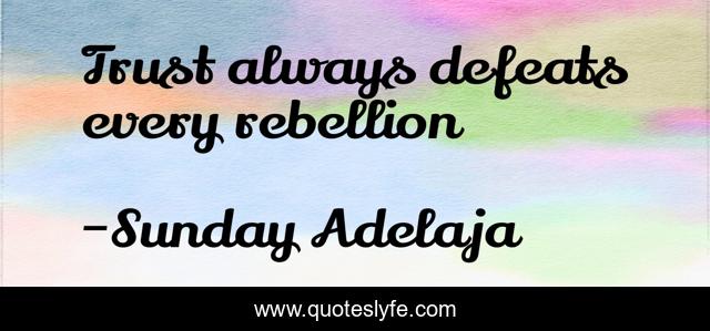 This page presents the quote "Trust always defeats every rebellion". Author of this quote is Sunday Adelaja. This quote is about trust, rebellion,.